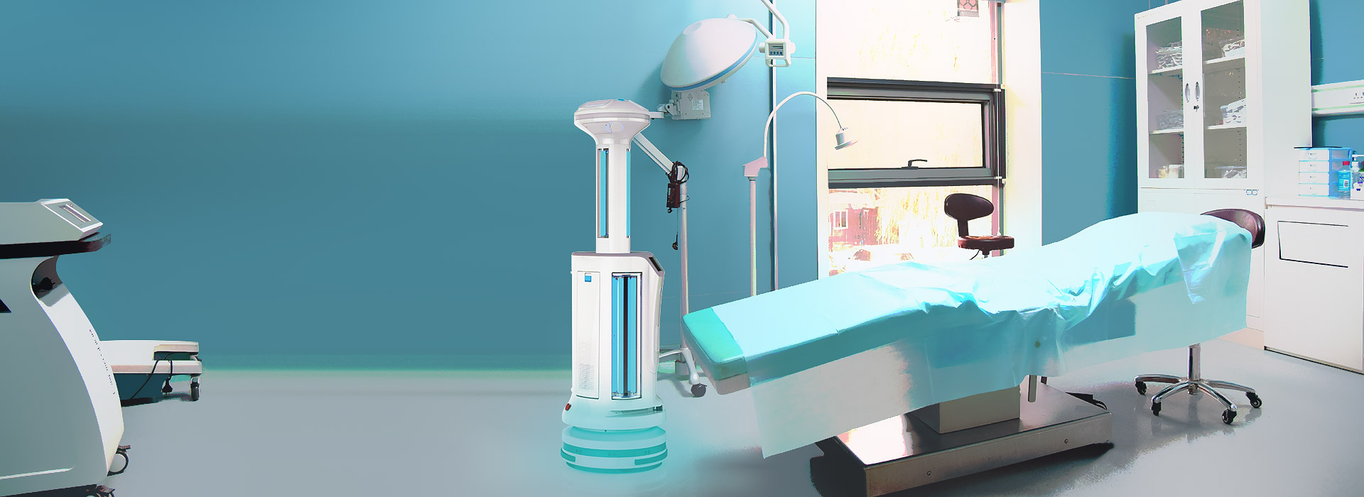 以機器人為載體,集成紫外線、超干霧過氧化氫、空氣過濾三種消毒滅菌方式于一體,結合手術室實際特點:手術臺數多,病人多為危重病人,如果消毒滅菌不規范化容易引起感染等問題,智能消毒機器人則能加強消毒得規范化管理,自動根據空間面積計算消毒時間,自動圍繞消毒目標進行360°無死角消毒。